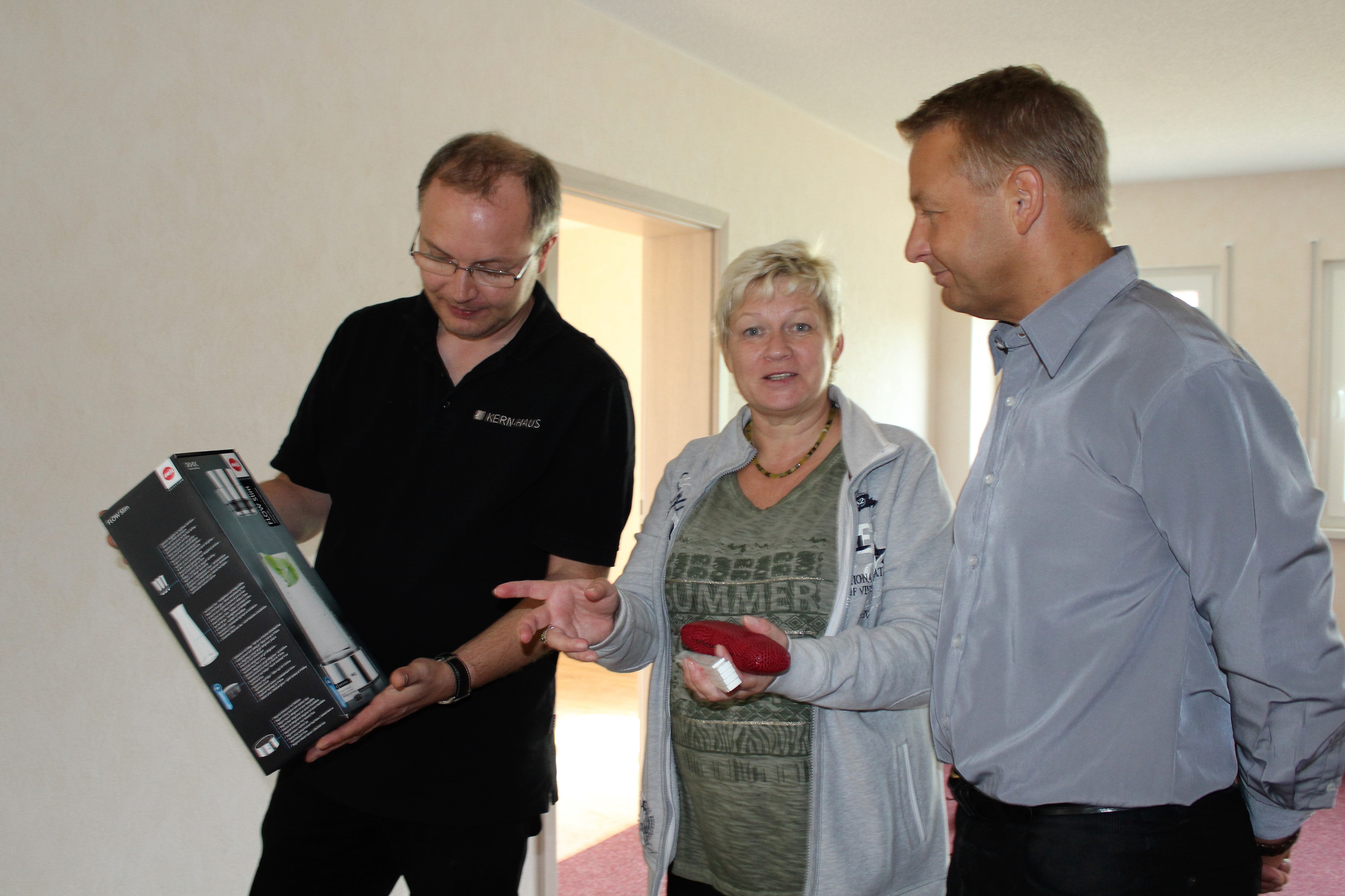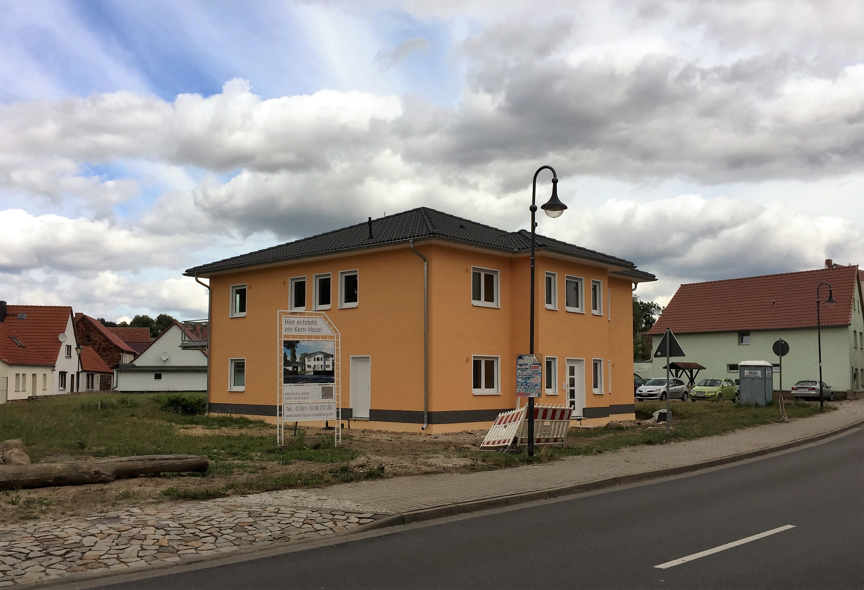 Der Innenausbau beginnt im Mai. Inzwischen ist der Anstrich der Fassade erfolgt. Ein freundlicher Orange-Ton schmückt das Kern-Haus in Loburg. Die Arbeiten im Innenbereich werden im September 2016 durch die Handwerker abgeschlossen und das Kern-Haus in Loburg wird an die Bauherren übergeben.